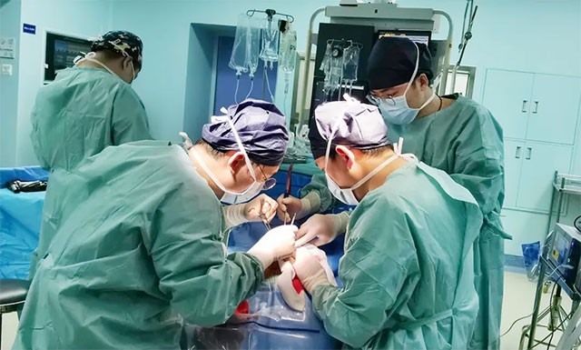 張琪博士在劉春醫(yī)生協(xié)助下,在顯微鏡下將顱外顳淺動脈游離后引入顱內(nèi),采用只有頭發(fā)絲直徑1/3的10-0吻合針線,與直徑只有1mm左右的大腦中動脈終支角回動脈行端側(cè)吻合。經(jīng)過12針縫合,最終顳淺動脈和大腦中動脈成功吻合?p合后先撤出遠(yuǎn)端阻斷夾無滲血,隨后撤出近端阻斷夾,血管吻合良好,無出血,以吲哚箐綠靜脈造影后見搭橋血管血流通暢,搭橋成功。整個手術(shù)持續(xù)5個多小時。術(shù)后,患者病情穩(wěn)定,神志清楚,言語流利,肢體活動正常。目前,陳女士已經(jīng)順利出院。