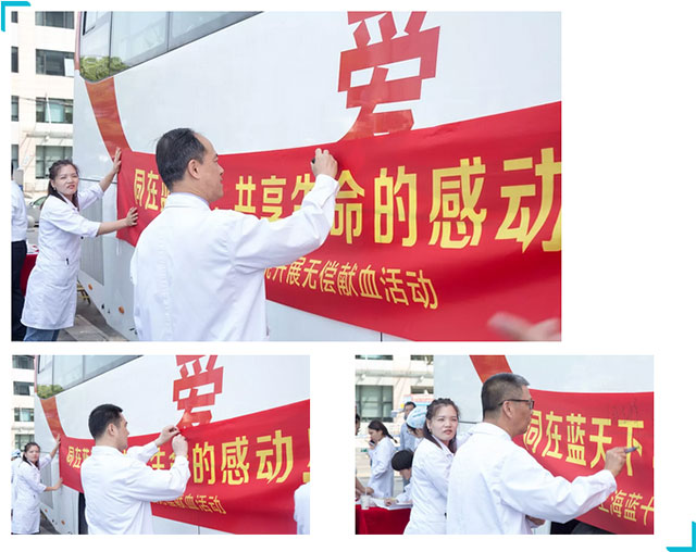▲ 院長項耀鈞,副院長潘耀良、周克祥等親臨活動現(xiàn)場號召大家踴躍參與獻(xiàn)血