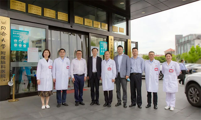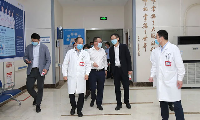 ▲ 上海市衛(wèi)健委主任鄔驚雷(前排右)一行抵達醫(yī)院