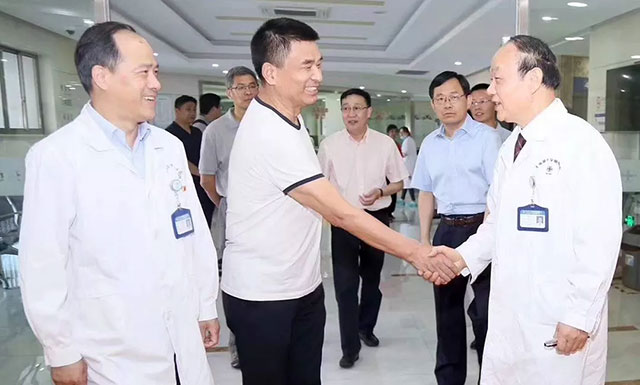 ▲ 時任上海市副市長左煥琛(左一)和上海市委副書記殷一璀(右一)到訪廣中醫(yī)院腦血管病康復(fù)病房