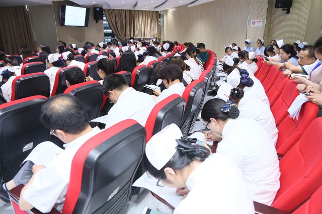 首期大講堂主題為《如何提升醫(yī)院優(yōu)質(zhì)服務(wù)》,由潘耀良副院長(zhǎng)主持,郭俊艷副院長(zhǎng)主講?偨(jīng)理兼黨支部書(shū)記朱敏、院長(zhǎng)項(xiàng)耀鈞、護(hù)理部葉文琴教授等院領(lǐng)導(dǎo)及全院200多位員工到堂聽(tīng)課,共同學(xué)習(xí)。