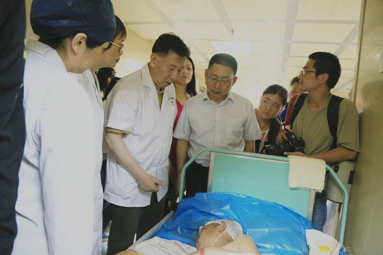 唐鎮(zhèn)生親自為小明明檢查了四肢、頭部等受傷情況,與其他專家一起查看了他的頭顱片子。由于小明明的受損部位臨近腦干,唐鎮(zhèn)生建議按腦挫裂傷治療,但治療起來應更加謹慎,“如果到時有需要,隨時可以轉(zhuǎn)到上海救治。”