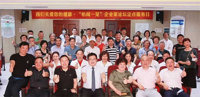 市人大代表、“柏聞一見”企業(yè)家論壇召集人柏萬青講話,“柏阿姨”分享了體驗服務(wù)項目后的真切感受,“活動安排得很好,不計報酬,動員全院工作人員參與,每個環(huán)節(jié)都有專人引導(dǎo)、負(fù)責(zé),這就是藍(lán)十字的敬業(yè)精神。”柏阿姨還動情講述了與藍(lán)十字8年的淵源,無論是愛心救治“浙江好人”鄭昌根,還是“電大好院長”鄭元齊,柏阿姨都曾親眼見證醫(yī)院專業(yè)救治、愛心奉獻(xiàn),她贊賞醫(yī)院“很不簡單”。柏阿姨再三感謝醫(yī)院,她說道,“這次活動在彩超檢查時我查到了問題,引起了我的警覺。企業(yè)家及其親友每個人檢查了,都有一些收獲,我們都要感謝醫(yī)院。”