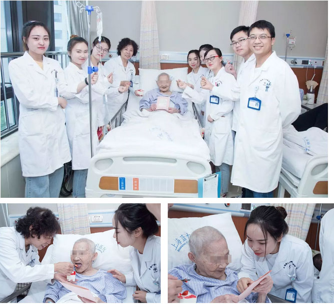 神經(jīng)內(nèi)科4B病區(qū)施奶奶即將迎來百歲生日,社員將她團(tuán)團(tuán)圍住,祝她生日快樂,天天開心。施奶奶笑顏如花,連聲道謝,表示真正生日的那天一定要請大家吃長壽面。