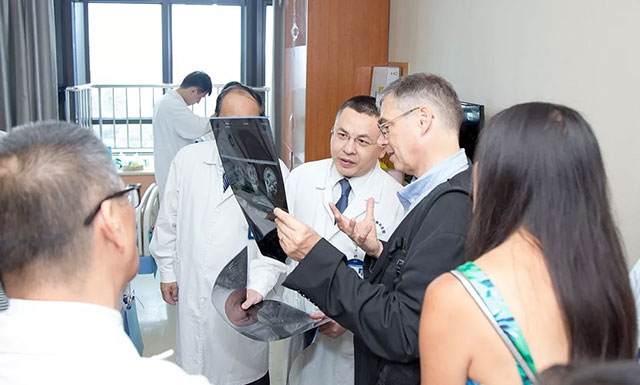 參觀神經(jīng)外科6B病區(qū)時(shí),Andreas Heinz教授走進(jìn)病房,一位腦膠質(zhì)瘤女童引起他的關(guān)注。該女童今年5歲,疑似髓母細(xì)胞瘤(顱內(nèi)惡性程度最高的膠質(zhì)瘤),潘仁龍主任及吳治群博士團(tuán)隊(duì)成功為其實(shí)施了神經(jīng)顯微鏡下腫瘤切除術(shù)。大家稱她為“Lucky girl(幸運(yùn)女孩)”。
