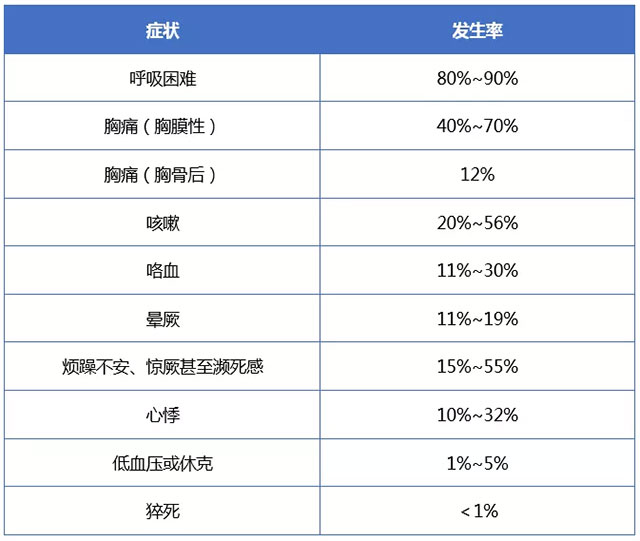 ▲ 肺栓塞(PE)常見癥狀