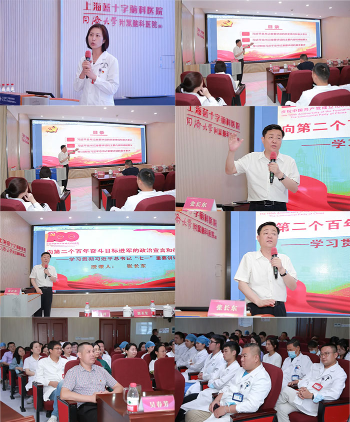一百年前的今日——1921年7月23日——是中國共產(chǎn)黨第一次全國代表大會在上海召開的日子。2021年7月21日下午,上海藍十字腦科醫(yī)院掀起學(xué)習(xí)熱潮,特邀武警上海市總隊原副政委、原武警上海指揮學(xué)院院長、副教授,上海市現(xiàn)代領(lǐng)導(dǎo)進修學(xué)院教授張長東蒞臨授課,主題為《向第二個百年奮斗目標(biāo)進軍的政治宣言和行動指南——學(xué)習(xí)貫徹習(xí)近平總書記“七一”重要講話精神》。朱敏書記與全體黨員、入黨積極分子、共青團員、及各科室醫(yī)護骨干仔細聆聽,參加公司慶祝建黨百年文藝匯演的部分演職人員也到場聆聽,該主題活動由郭俊艷副院長主持。