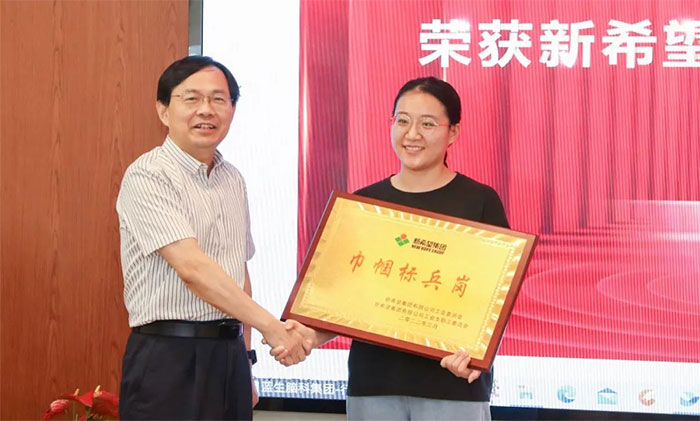 ▲ 卓立強董事長頒發(fā)“巾幗標兵崗”牌匾