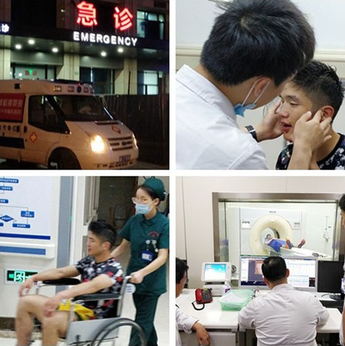 28日第二場比賽,19歲的選手在比賽中下頜骨雙側(cè)骨折、右側(cè)鼻翼骨折,嘴角血流不止,上海藍(lán)十字腦科醫(yī)院急救人員迅風(fēng)疾馳,首先對其進(jìn)行傷情確認(rèn),并現(xiàn)場為其消腫止血和意識判斷,同時通知場外待命的救護(hù)車迅速將其送往醫(yī)院進(jìn)行下一步的救治處理。