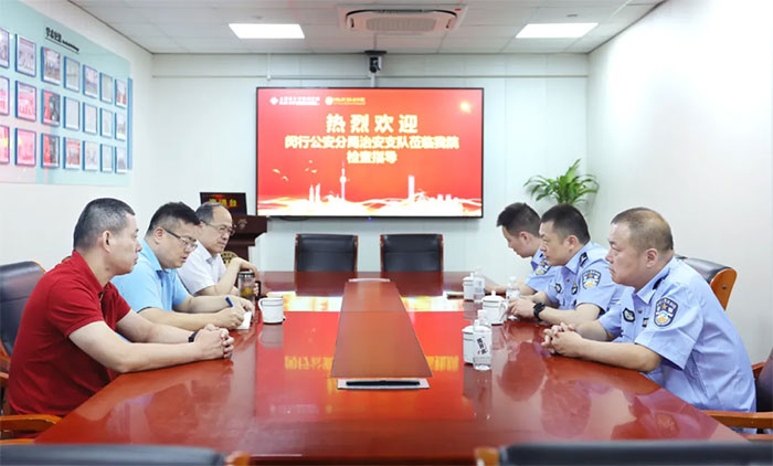 7月28日上午,上海市公安局閔行分局治安支隊政委李強,支隊肖警官、高警官一行蒞臨上海藍十字腦科醫(yī)院【同濟大學附屬藍十字腦科醫(yī)院(籌)】檢查指導工作,醫(yī)院書記朱敏、院長項耀鈞、副總經(jīng)理兼工會主席吳春芳陪同并參加座談。