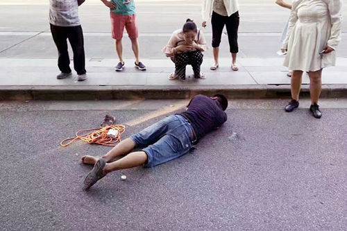 羅佳確保該男士安全后,蹲下來(lái)仔細(xì)觀察其發(fā)作癥狀