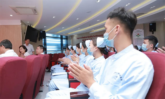 本次實習(xí)生崗前培訓(xùn)工作得到了公司和醫(yī)院領(lǐng)導(dǎo)的高度重視。培訓(xùn)首日,院長項耀鈞、副院長郭俊艷、副總經(jīng)理兼工會主席吳春芳、副總經(jīng)理蘇順吉等院領(lǐng)導(dǎo)與實習(xí)生見面并親切交流,見面會由周詠梅副院長主持。