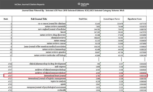 ▲ 《International Heart Journal》雜志被SCI收錄排名