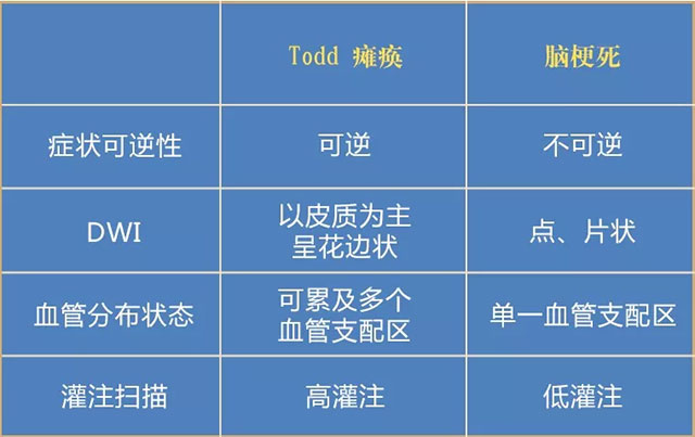 癲癇后Todd癱與腦梗死的鑒別診斷,主要有以下幾個要點(diǎn):
