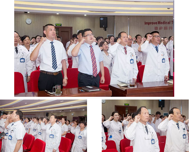 當日值守一線崗位的醫(yī)師們也在科室里重溫了醫(yī)師誓詞。