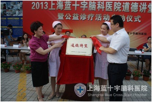 為深入貫徹實施《公民道德建設(shè)實施綱要》,進(jìn)一步推進(jìn)醫(yī)院道德文明建設(shè),加強醫(yī)務(wù)人員職業(yè)道德修養(yǎng),更好為人民群眾的健康服務(wù),8月28日下午,我院召開了“2013道德講堂揭牌暨公益診療活動”啟動儀式,徐匯區(qū)衛(wèi)生局領(lǐng)導(dǎo)、徐匯區(qū)民營醫(yī)療機構(gòu)領(lǐng)導(dǎo)、徐匯區(qū)田林街道領(lǐng)導(dǎo)應(yīng)邀出席了儀式。徐匯區(qū)衛(wèi)生局副局長朱福致辭,徐匯區(qū)民營醫(yī)療機構(gòu)黨委書記周玲芳、上海藍(lán)十字腦科醫(yī)院黨支部書記朱敏為活動揭牌。