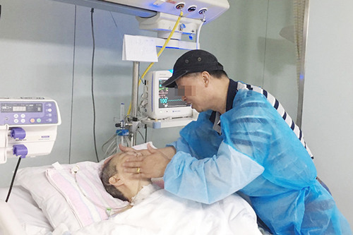 上海藍(lán)十字腦科醫(yī)院九樓,一道天藍(lán)色的門,上面寫著:探視時間:15:30-16:00。每天這個時候,很多家屬進(jìn)去,戴上口罩、帽子、鞋套,全副武裝完畢,再進(jìn)一道門,去看望自己的親人。
