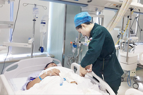 是怎么回事呢?原來是在一個凌晨,李魯萍主任正在辦公室簡易的床上休息,突然外面吵吵鬧鬧。原來是一個晚期腦瘤患者病情危急,被醫(yī)生送到了ICU,家屬不同意搶救。ICU的值班醫(yī)生楊金明、護(hù)士長張棕智、護(hù)士石莉莉、錢婷看到患者呼吸急促,顧不上太多,立即實(shí)施搶救,給患者吸痰,面罩供應(yīng)氧氣,搶救了半個小時,患者的心率從140下降到100/分,血氧飽和度從76%上升到99%,體征平穩(wěn)。