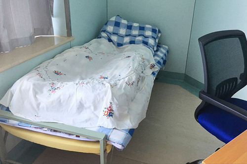 一張簡易的床鋪,李魯萍主任就把辦公室當(dāng)成了家