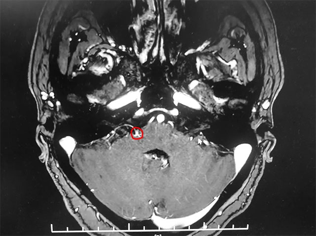入院后,經(jīng)面神經(jīng)MRTA平掃+增強(qiáng)檢查顯示,患者右側(cè)面神經(jīng)與周圍小血管關(guān)系密切。在對患者病情及影像學(xué)資料進(jìn)行評估,并告知患者及家屬手術(shù)風(fēng)險后,上海藍(lán)十字腦科醫(yī)院神經(jīng)外科主任沈建康教授團(tuán)隊為患者實(shí)施了面神經(jīng)微血管減壓手術(shù)。