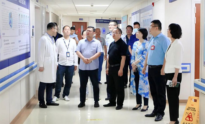 9月22日上午,由閔行區(qū)七寶鎮(zhèn)人大主席趙龍芳、副鎮(zhèn)長(zhǎng)胡小勝、副鎮(zhèn)長(zhǎng)劉鈞等鎮(zhèn)三套班子領(lǐng)導(dǎo)帶隊(duì)的檢查組,以及鎮(zhèn)規(guī)建辦、社事辦、老齡辦、安監(jiān)所、七寶派出所、七寶市監(jiān)所等相關(guān)單位負(fù)責(zé)人蒞臨上海藍(lán)十字腦科醫(yī)院,開(kāi)展2023年七寶鎮(zhèn)中秋國(guó)慶安全大檢查。醫(yī)院總經(jīng)理兼書(shū)記朱敏、潘耀良副院長(zhǎng)、吳春芳副總經(jīng)理、吳啟航副總經(jīng)理等院領(lǐng)導(dǎo),以及醫(yī)院辦公室、總務(wù)科等職能科室負(fù)責(zé)人全程陪同檢查。