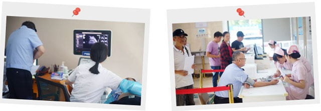 ▲ 為民警進(jìn)行頸動(dòng)脈血管超聲檢查、測(cè)量血壓血糖