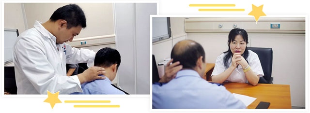 頸肩腰腿痛等各類疼痛問(wèn)題,困擾著許多上班族,民警也不例外。上海藍(lán)十字腦科醫(yī)院疼痛門診的醫(yī)生們悉心聆聽(tīng)了解每一位民警的情況,并給予專業(yè)的指導(dǎo)建議。