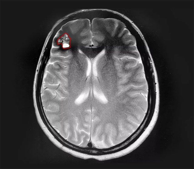 ▲ 患者右側(cè)額葉可見(jiàn)桑葚樣團(tuán)塊