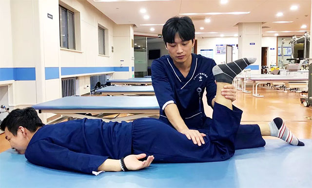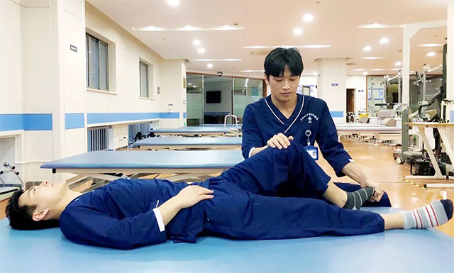 ▲ 進(jìn)行患側(cè)肢體的抗痙攣訓(xùn)練
