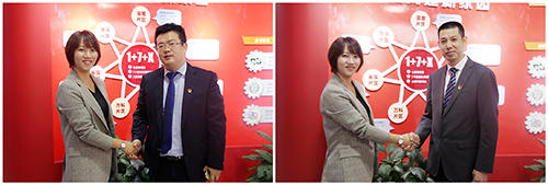 ▲七寶鎮(zhèn)社建委副書(shū)記吳哲與醫(yī)院領(lǐng)導(dǎo)握手合影