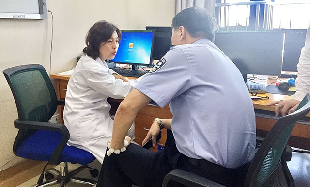 ▲ 為體檢的民警答疑解惑