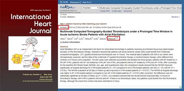 ▲ 今年6月發(fā)表在國際《International Heart Journal》雜志上的論文被SCI收錄