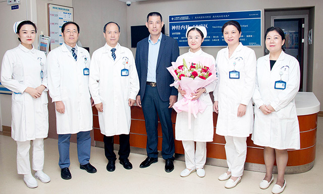 這位護(hù)士的遭遇牽動(dòng)著醫(yī)院領(lǐng)導(dǎo)的心。得知事件發(fā)生后,院領(lǐng)導(dǎo)高度重視,醫(yī)院工會(huì)立即組織慰問(wèn)。本月18日,院長(zhǎng)項(xiàng)耀鈞、工會(huì)主席吳春芳、副院長(zhǎng)周詠梅等領(lǐng)導(dǎo)來(lái)到事發(fā)病區(qū),親切慰問(wèn)了受傷護(hù)士,對(duì)她的遭遇表達(dá)了深切的關(guān)懷,對(duì)她的堅(jiān)忍和寬容給予了肯定,同時(shí),更對(duì)背后默默理解與支持這位護(hù)士的家屬表示由衷的感謝。