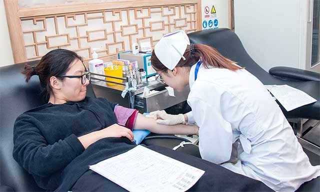 ▲登記、體檢、化驗、獻血有序進行