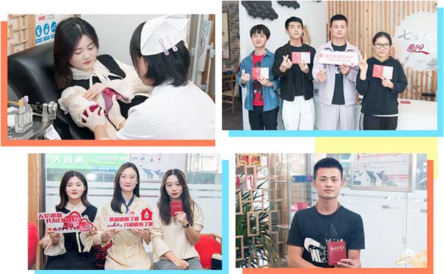 在獻血區(qū)的醫(yī)護人員紛紛挽起自己的袖管,躺在采血椅上,獻出自己的青春熱血,一份愛心、一份真情,換來更多的希望與感動。