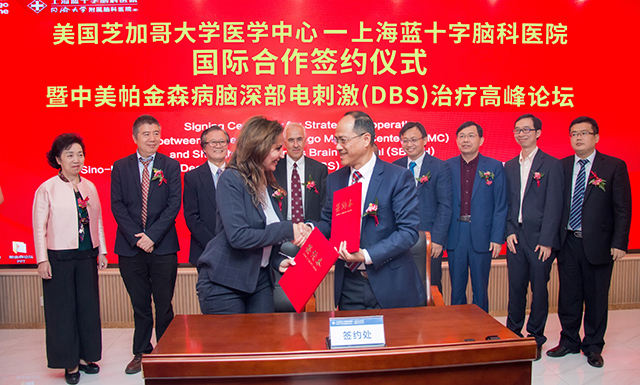 10月29日,芝加哥大學(xué)醫(yī)學(xué)中心 ( The University of Chicago Medicine,簡(jiǎn)稱:芝大醫(yī)學(xué)中心 UCM ) —上海藍(lán)十字腦科醫(yī)院國(guó)際合作簽約儀式暨中美帕金森病腦深部電刺激(DBS)治療高峰論壇在上海藍(lán)十字腦科醫(yī)院成功舉行。全天議程共有三項(xiàng),具體為:雙方洽談及病例討論、國(guó)際合作簽約儀式,中美醫(yī)學(xué)專家關(guān)于帕金森病腦深部電刺激 (DBS) 治療高峰論壇。
