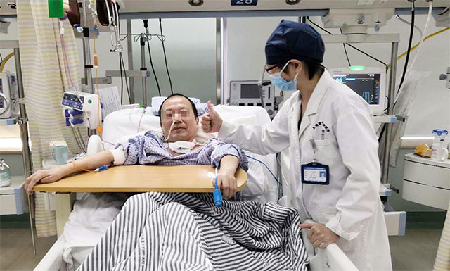 ▲ 患者恢復(fù)“自主呼吸”,李魯萍豎起大拇指
