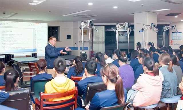 11月11日下午,上海藍(lán)十字腦科醫(yī)院康復(fù)醫(yī)學(xué)科開展了關(guān)于“中風(fēng)康復(fù)評(píng)定和康復(fù)治療策略”的知識(shí)培訓(xùn),康復(fù)醫(yī)學(xué)科學(xué)科帶頭人程安龍教授就相關(guān)內(nèi)容進(jìn)行了全面生動(dòng)的講解?祻(fù)醫(yī)學(xué)科主任姚金榮、主管技師張雁及相關(guān)人員共計(jì)七十多人參加了此次康復(fù)知識(shí)培訓(xùn)活動(dòng)。