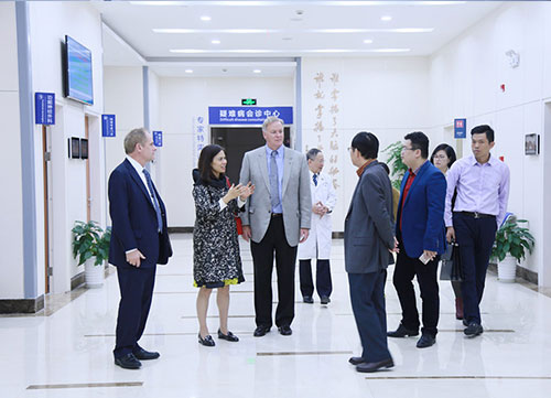 11月4日下午, 美國(guó)美圣迪斯醫(yī)療國(guó)際醫(yī)療服務(wù)中心CEO David Baytos 先生及駐中國(guó)地區(qū)首席代表Linda Lin女士一行來(lái)我院考察交流。美國(guó)美圣迪斯醫(yī)療成立于1918年,是美國(guó)知名的專業(yè)醫(yī)療機(jī)構(gòu),集團(tuán)擁有世界頂尖級(jí)的醫(yī)院營(yíng)運(yùn)經(jīng)驗(yàn)、醫(yī)療設(shè)備和醫(yī)療專家隊(duì)伍,其中神經(jīng)科、腫瘤科、器官移植、心血管、小兒科及骨科等在美國(guó)均處于領(lǐng)先地位,已與我國(guó)多家醫(yī)療單位建立長(zhǎng)期的合作關(guān)系。