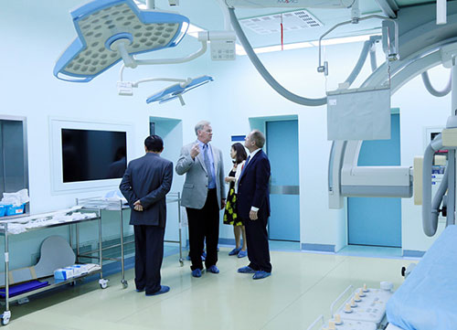 訪問(wèn)團(tuán)在DSA血管介入診療室里參觀