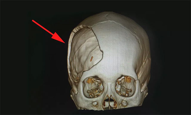 ▲ 患者右側(cè)顱骨缺損嚴(yán)重:14cmX10cm