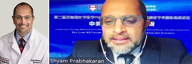 UCM神經(jīng)科主任Shyam Prabhakaran, M.D.首先簡單介紹了芝加哥大學(xué)神經(jīng)科學(xué)中心的12位杰出專家學(xué)者、兩大享譽(yù)世界的神經(jīng)科學(xué)項目、四大神經(jīng)科和神經(jīng)外科中心及項目。隨后以《顱內(nèi)狹窄的藥物治療和介入干預(yù)》為題,從顱內(nèi)動脈粥樣硬化狹窄(ICAD)背景、診斷和機(jī)制、治療選擇、MYRIAD試驗的發(fā)現(xiàn)和展望等方面進(jìn)行闡釋,研究復(fù)發(fā)卒中伴有癥狀的ICAD患者的自然病程;引用之前的介入治療和藥物治療的臨床試驗以減少ICAD患者再發(fā)卒中的風(fēng)險;評估卒中的各種機(jī)制,探索未來針對有癥狀I(lǐng)CAD患者的臨床試驗的潛在治療目標(biāo),同時分析了目前面臨的挑戰(zhàn)。