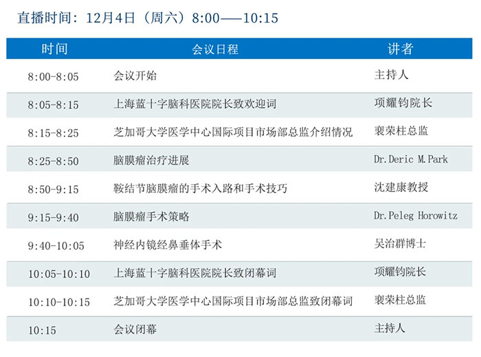 Live Forecast (Dec.4th): University of Chicago Medicine and Shanghai Blue Cross Brain Hospital Third Annual Neuro International Summit The Sino-US Forum of Treatment of Brain Neoplasms Surgery.
