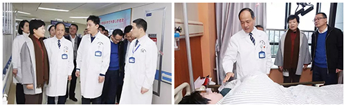 楊德妹副區(qū)長(zhǎng)一行先后走進(jìn)ICU重癥監(jiān)護(hù)病區(qū)和腦血管病區(qū),了解情況,探望患者。