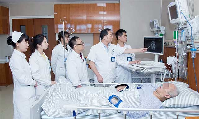 ▲ 神經(jīng)內(nèi)科李振并主任團(tuán)隊(duì)利用“移動(dòng)醫(yī)生工作站”進(jìn)行查房