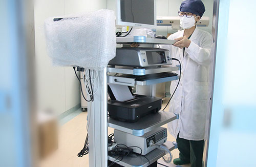 每次為一位患者做完纖支鏡治療,李主任早已汗?jié)窳穗p手