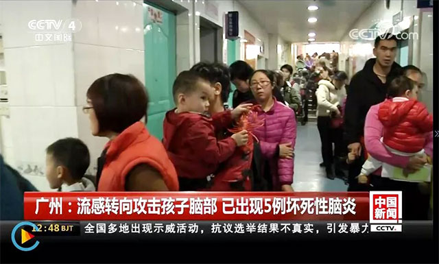 據(jù) CCTV4中文國(guó)際、《南方都市報(bào)》、《廣州日?qǐng)?bào)》等多家媒體報(bào)道,廣州市一位年僅 3 歲的女童,因患甲型 H1N1 流感而導(dǎo)致壞死性腦炎,住在重癥病房,處于昏迷狀態(tài);純焊邿岬牡 2 天入院治療,持續(xù)高熱、精神狀態(tài)差、白細(xì)胞低;入院后進(jìn)行抗病毒治療,可是病程進(jìn)展依然快速,逐漸出現(xiàn)意識(shí)障礙,胡言亂語(yǔ);發(fā)病第 5 天,孩子進(jìn)入了昏迷狀態(tài)。腦部影像顯示是壞死性腦炎。