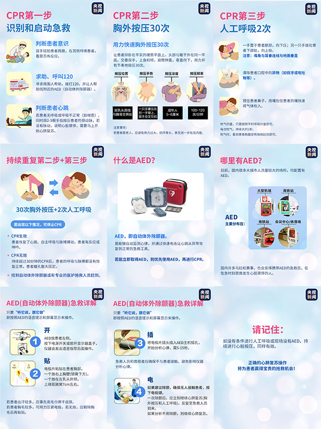 齊洪閣主任指出,二者不能互相替代。“心肺復(fù)蘇只能暫時(shí)幫助建立循環(huán),讓我們通過(guò)外力驅(qū)動(dòng)把心臟的一些血壓到外面去滿足周?chē)鞴俚墓┭5,它并沒(méi)有從本質(zhì)上改變室顫。只有靠AED釋放一些高壓的電,才能瞬間打斷這個(gè)顫動(dòng)心臟的節(jié)奏。”
