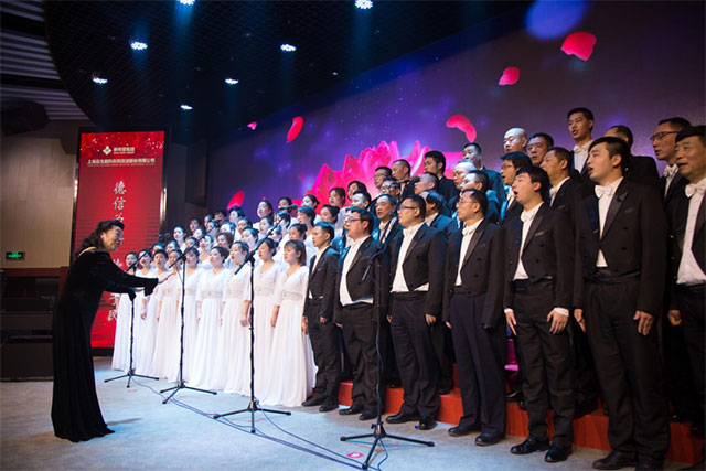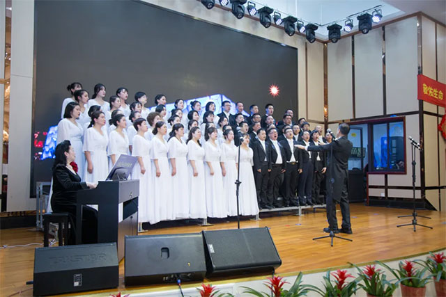 ▲ 項耀鈞院長指揮“藍色夢幻合唱團”五聲部合唱《我的中國心》