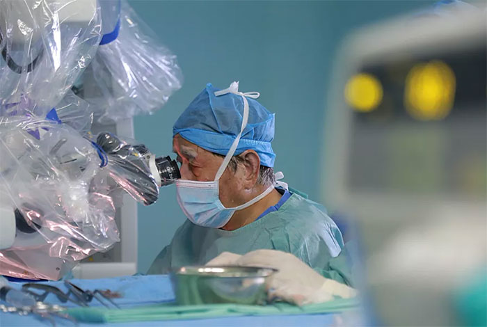 告知患者及家屬手術(shù)風(fēng)險并征得同意后,沈教授在神經(jīng)外科陳永新博士的協(xié)助下,為患者開展了面神經(jīng)微血管減壓手術(shù)。